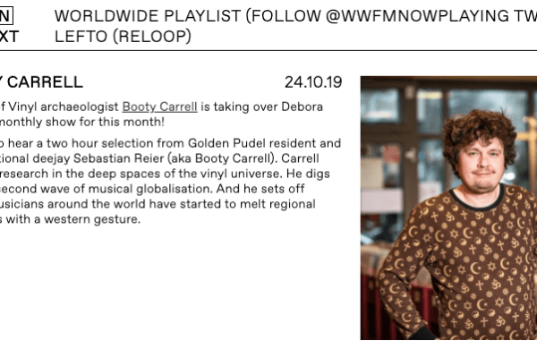 I am filling in for Debora Ipekel on October 24 1-3 UK time for a two hour moderated and mixed and hopefully enjoyable show for WorldwideFM. Chewn in if you… Read more WorldwideFM →